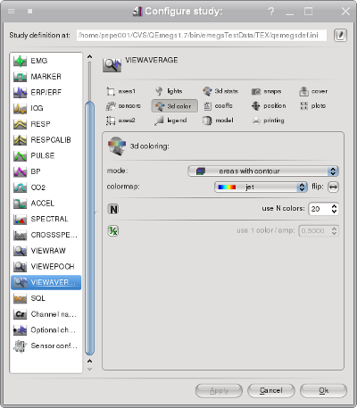 Coloring is configured on the 3d color page of the VIEWAVERAGE section of the “configure-study"-dialog.